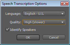 Нажатие кнопки Transcribe или выполнение команды Clip -> Audio Options -> Transcribe to Text приводит к появлению диалогового окна со скудными настройками.