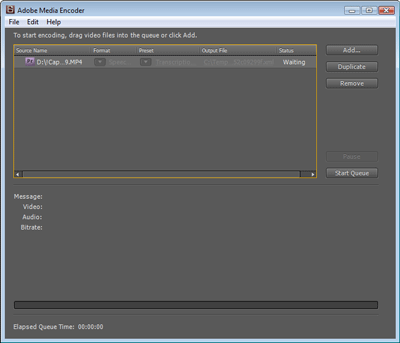 Лишь после того, как вы убедились в правильных настройках и нажали ОК, запускается программа Adobe Media Encoder.
