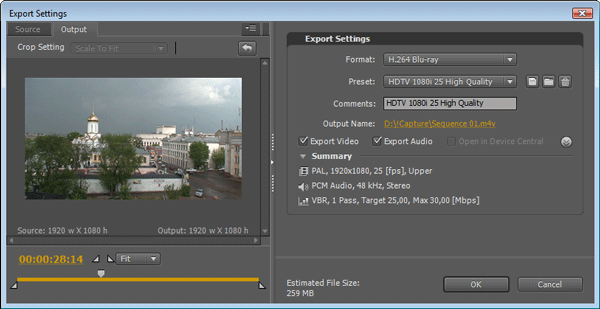 Те, кто давно знаком с Premiere Pro, наверняка знают о его способности работать с одним из форматов без перекодирования. Разумеется, речь о DV. Прежде, в ранних версиях Premiere Pro, выводом в файл занимался встроенный в программу модуль, где пользователь мог снять флажок с одного из самых важных пунктов: Recompress. Данная опция позволяла выводить обрабатываемый материал без перекодирования, при этом сохранялось качество исходного видео. Теперь такого флажка пользователь не увидит. Однако это не означает, что любое видео теперь в обязательном порядке перекодируется, это не так. Если параметры входного DV-AVI файла совпадут с настройками конечного, то перекодирования не произойдет, хотя просчет видео теперь ведется несколько дольше. Остальные форматы нуждаются в перекодировании, что неудивительно, ведь мы имеем дело с профессиональной программой, от которой требуется не простая резка/склейка клипов. Для этого существуют специализированные утилиты, в основном, бесплатные, в то время как профессиональный монтаж чаще всего представляет собой исправление огрехов съемки путем наложения фильтров, что, конечно, всегда влечет за собой полное перекодирование.