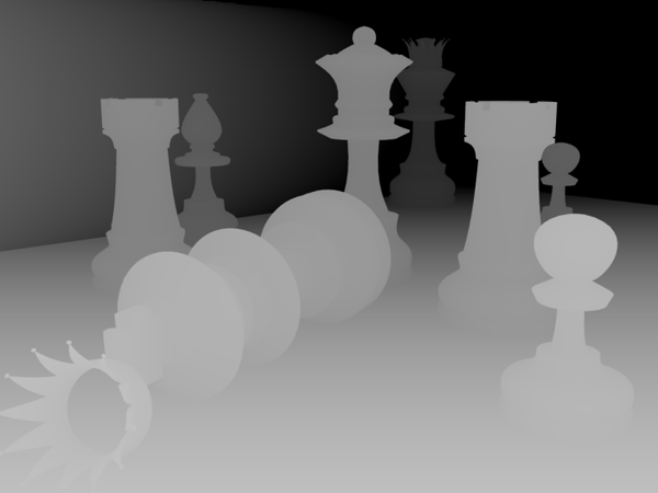 а так же информация о глубине сцены, иначе называемая Z-buffer, которая так же без труда генерируется из той же сцены, где создавалось основное изображение. В сущности, это та же картинка, только в градациях серого, темнеющая к глубине.