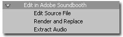 Extract Audio — копирует аудио из исходного клипа, после чего загружается Adobe Soundbooth с загруженным звуком. По окончании обработки данного звукового файла в Adobe Soundbooth, перетяните копию звукового файла из списка в панели Project, удерживая клавишу Alt, на аудиодорожку целевого клипа. Тем самым вы произведете замену звукового файла.