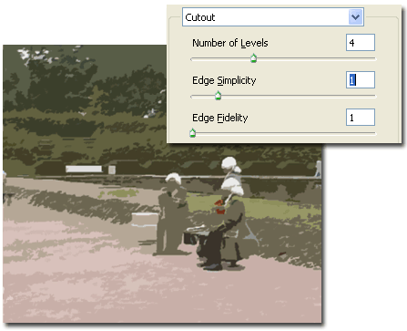 Примените к получившейся видеогруппе любой фильтр: Filter>Artistic>Cutout.