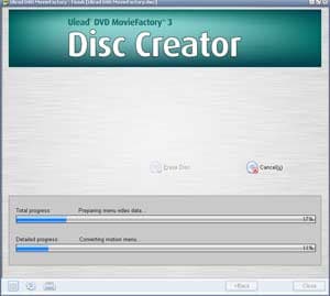 Процесс обсчета и прожига нетороплив: "игрушечный" по DVD-меркам проект объемом 154 MB записывался на диск около 15 минут. Основное время занял рендеринг анимированного меню и подготовка к прожигу остальных материалов.
