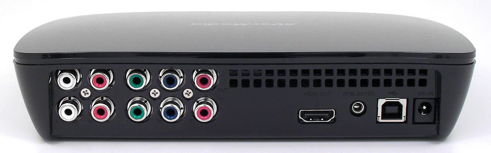 Пассивное охлаждение электроники осуществляется посредством вывода тёплого «отработанного» воздуха через решётку, расположенную на задней панели. Здеь же находятся и все остальные разъёмы: ввод/вывод стереозвука и компонентного видеосигнала, HDMI-выход для подключения устройства к телевизору, разъём для подключения прилагаемого инфракрасного датчика, USB-порт для соединения с ПК и вход для блока питания.