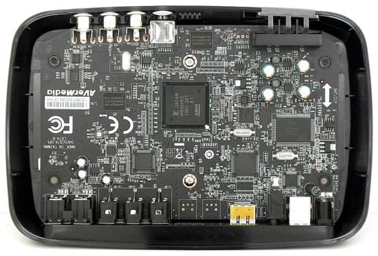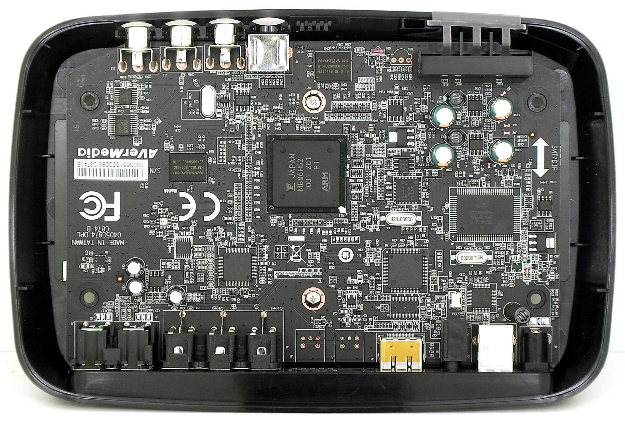 Сразу же бросается в глаза расположенный по центру печатной платы микропроцессор. Этот 90-нанометровый аппаратный транскодер компании Fujitsu известен с 2007 года и умеет в реальном времени кодировать поступающий HD-сигнал в формат AVC. Потребляемая им мощность не превышает двух ватт.