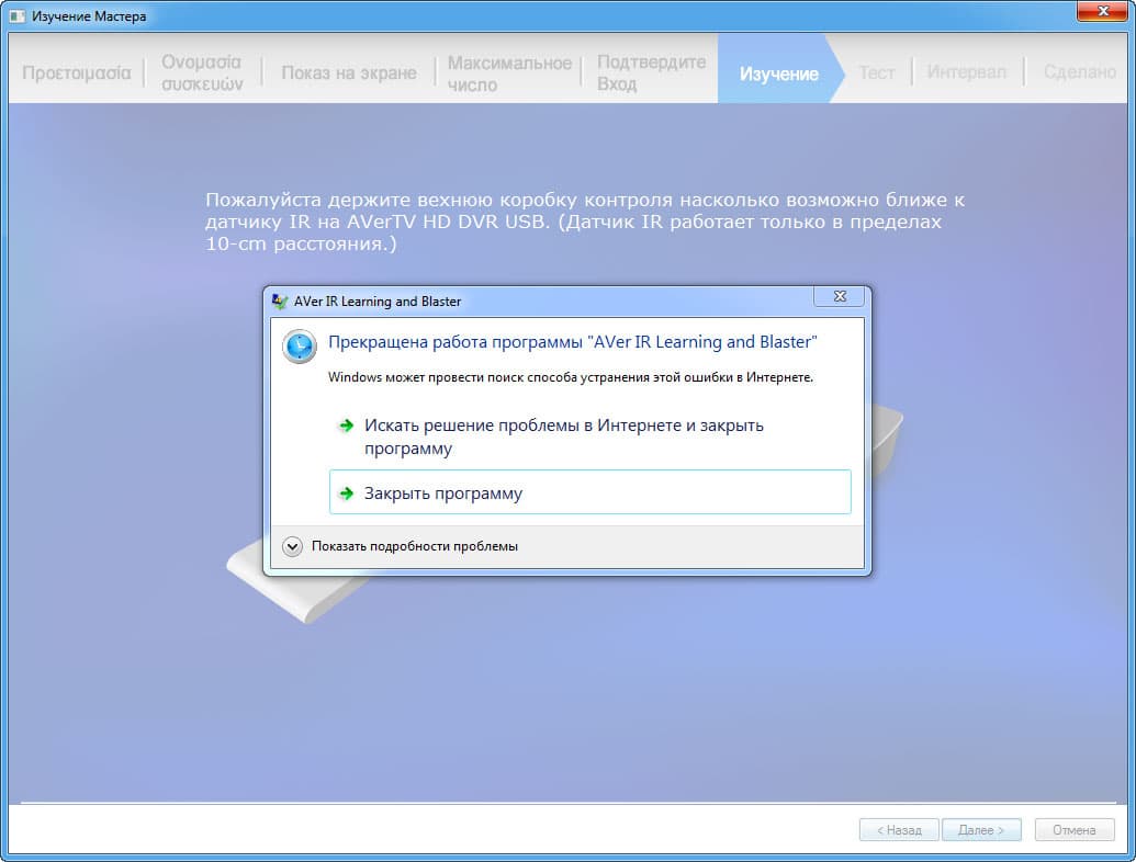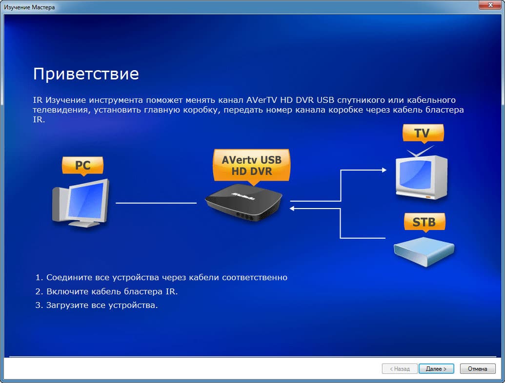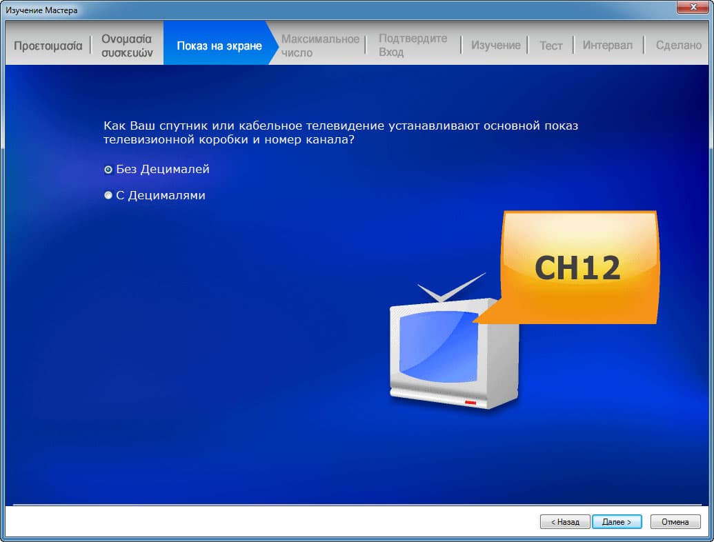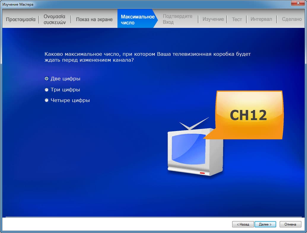 Чтобы такой фокус удался, наше устройство следует прежде всего обучить командам, которые подаёт пульт телеприставки (для этого обучения на передней панели устройства имеется инфракрасный датчик). Процесс обучения проводится в step-by-step мастере, чей интерфейс переведён с явной поспешностью. Впрочем, несмотря на promt-овский перевод, понять происходящее несложно.