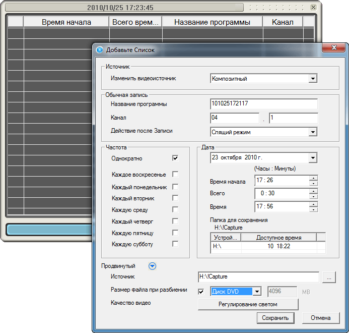 Хочется посетовать на ограничение в выборе битрейтов. Например, минимально возможный битрейт 3000 Кбит/сек при захвате SD — явно избыточен. Вспомните, большинство так называемых «рипов», закодированных предыдущим поколением кодеков (DivX, XviD), имеют битрейт от 1000 до 2000 Кбит/сек — и ничего, хватает для фильма с размерами кадра 720×576. Если же учесть, что наше устройство кодирует в современный кодек, то для записи сигнала в стандартном разрешении вполне хватило бы и 1000 Кбит/сек, а то и вовсе 500 Кбит/сек.