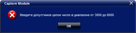 Как уже говорилось, захват видео при помощи аппаратного кодировщика характерен в первую очередь тем, что настройки захвата имеют жёсткие ограничения. Те, которые раз и навсегда записаны в микропрограмму кодирующего чипа, например, фиксированные значения размера кадра и битрейта. Узнать те самые пресловутые ограничения битрейта при аппаратном захвате можно, впечатав какую-нибудь несусветную цифру в окошко битрейта. Тут же программа выдаст искомую информацию: