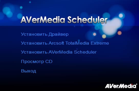 Прилагаемый компакт-диск с программным обеспечением оснащён автозапуском, с его помощью пользователю предлагается установить драйвер устройства, программный пакет Arcsoft TotalMedia Extreme и утилиту AVerMedia Sheduler.