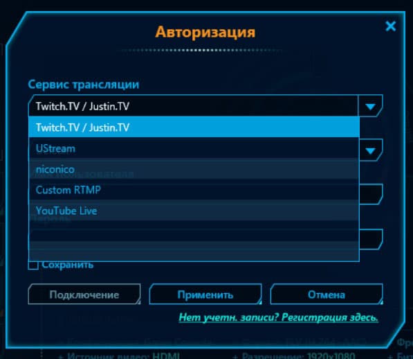 - помимо встроенной поддержки известных стрим-сервисов, имеется возможность вещания на любой пользовательский сервер