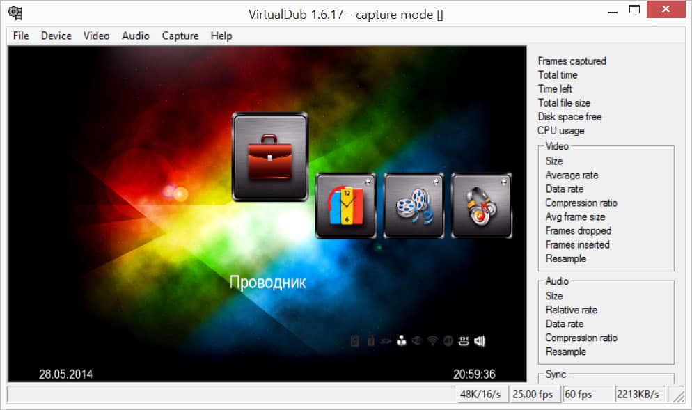 - имеется возможность захвата с любым возможным на сегодня разрешением и частотой кадров (за исключением, конечно, 4K вариантов — ну, до этого еще ой как далеко)