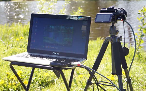 На следующей фотографии можно видеть типичное использование рассматриваемого устройства: к HDMI-выходу видеокамеры подключен AverMedia ExtremeCap U3, который, в свою очередь, соединяется с ноутбуком по USB 3.0. Кстати, вместо HDMI-выхода камеры мог быть задействован ее компонентный выход — принципиальной разницы нет, за исключением качества получаемого (точнее, выдаваемого камерой) сигнала: по HDMI несется поток 1920×1080 с частотой 50 кадров в секунду, в то время как компонентный выход может дать лишь интерлейсный Full HD-сигнал. Разумеется, не нужно нам этого древнего интерлейса, если в наличии имеется видеокамерный незаблокированный HDMI. Тем более в целях тестирования.