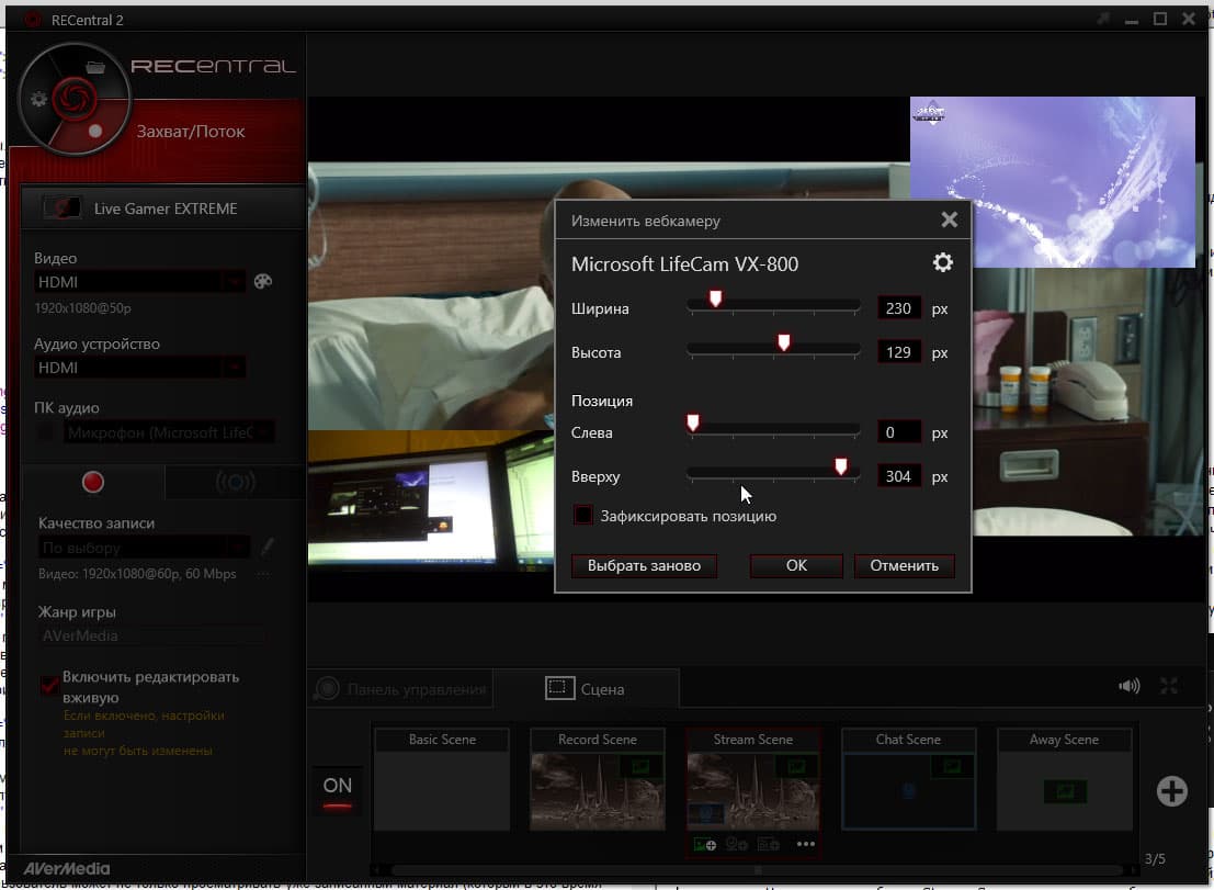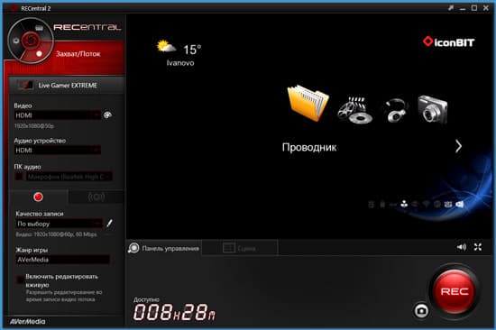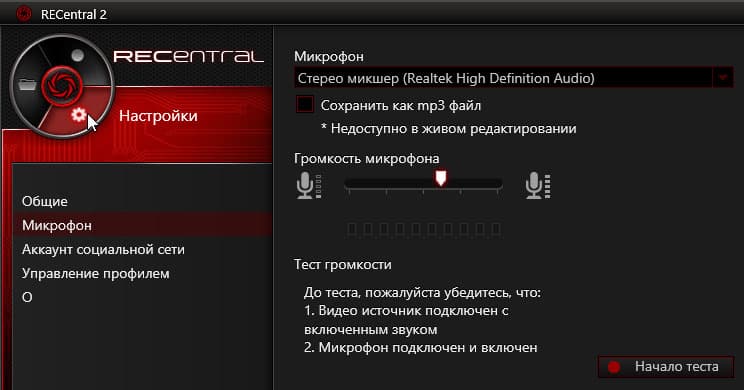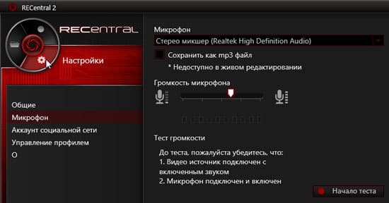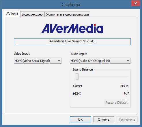 Следующий вопрос, который хочется рассмотреть, касается этой возможности устройства микшировать три источника аудиосигнала. Это несложно, однако для начала заглянем в настройки программы AverMedia RECentral 2, с помощью которой наша карта управляется с ПК.