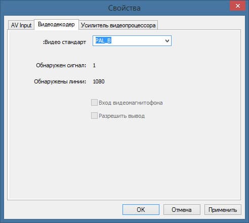 Именно столько видеовходов — два — имеется в карте захвата. Однако слово Компонент не нужно понимать буквально, тут имеется в виду сигнал, поступающий на второй вход, к которому имеется возможность подключить как собственно компонентный источник, так и сигнал, поступающий с видеовыхода DisplayPort.