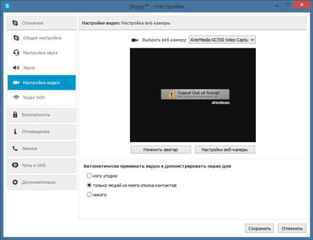 Превышен допустимый для Skype размер кадра и частота? Возможно. Однако как мы ни пытались изменить выходные значения шины HDMI на плеере, с которого подавался сигнал, от PAL/NTSC до 1080 60p, результата эти попытки не принесли абсолютно никакого.