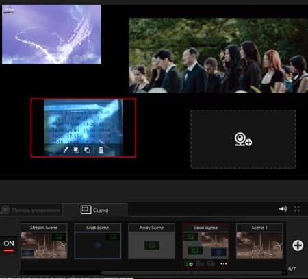 Для чего здесь эти шаблоны? Ответ понятен — для оформления видеозаписи! Например, в шаблоне Stream Scene позволяется добавить поверх основного видео даже живой поток с подключенной к ПК вебкамеры и любую статичную картинку. Параметры любого такого окошка (размер, размещение, прозрачность, содержание) могут быть изменены в любой момент времени, пока идет живой монтаж.
