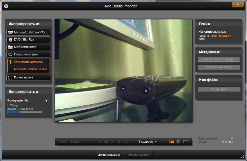 Здесь, помимо стандартного DV-захвата, реализованы такие функции, как импорт с дисков, а также прямой захват с источников, работающих через WDM (Windows Driver Model, модель драйверов Windows) — любая веб-камера или другое устройство. Кроме того, имеется и такая интересная возможность, как захват статичных кадров, что можно использовать для создания домашних мультиков, к примеру.