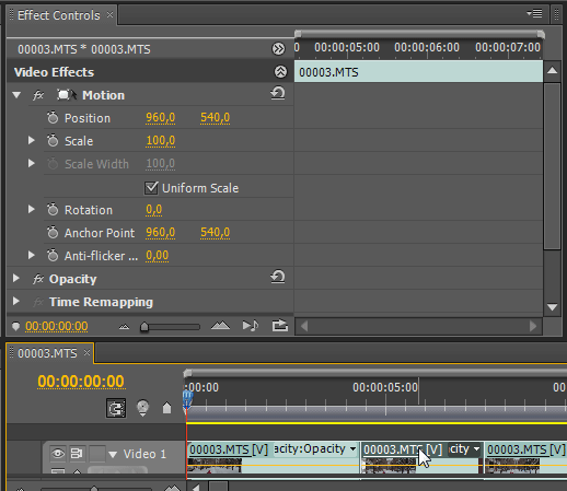 Существует и другой способ. Например, в программе Adobe Premiere Pro настройка фильтра доступна в специальной панели, всегда находящейся перед глазами пользователя. Достаточно лишь щёлкнуть по нужному клипу на таймлинии, и в указанной панели появится древовидный список его параметров, изменить которые можно парой кликов.