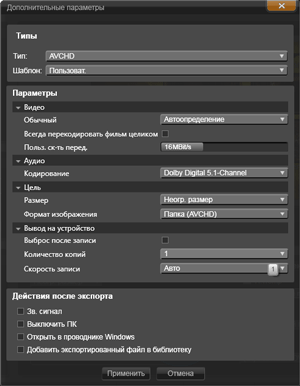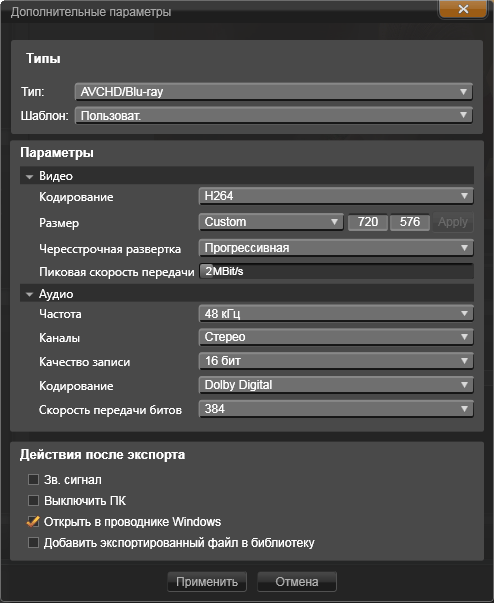 Дополнительные настройки экспорта содержат достаточное количество параметров. Достаточное для настройки качества, но, увы, не для нормального авторинга, во время которого не должно происходить перекодирования материала.