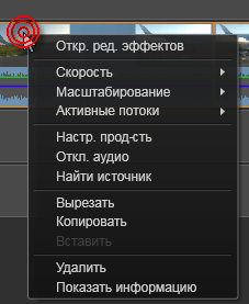Несмотря на то, что разработчик собрал в одном таком окне почти все фильтры и эффекты, которые могут быть применены к ролику, некоторые операции всё же выполняются с помощью других инструментов. Чтобы их обнаружить, нужно нажать правой кнопкой мыши на ролике — такой приём используется почти во всех видеоредакторах.