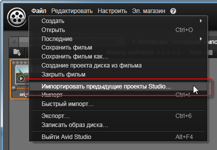 Чтобы избежать ошибки в процессе создания точной копии упомянутого проекта, воспользуемся дружбой продуктов Avid. Эта дружба выражается в способности Avid Studio импортировать проекты, созданные в Pinnacle Studio.