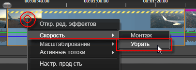 Теперь, зная слабое место программы, попробуем освободить её от столь непосильного труда и удалим эффект изменения скорости видеоклипа.