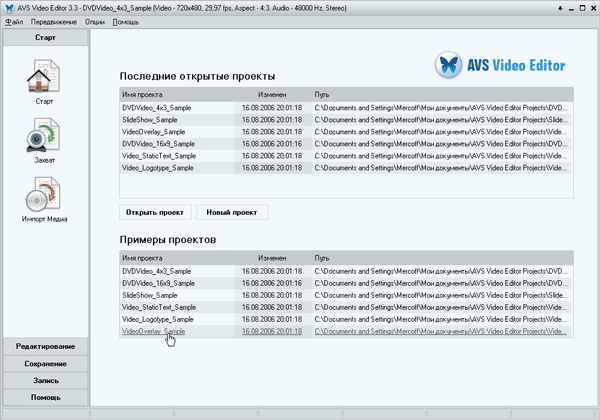 Установка длится не более минуты, перезагрузка операционной системы не требуется программа уже готова к работе. И, как видим, программа эта не одинока: вместе с ней в системе обосновались еще три приложения, AVS Audio Editor, AVS Mobile Uploader (внимание, владельцы мобильных видеоустройств!) и, наконец, AVS Project Mover.