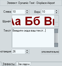 Нажатие кнопки Дополнительно приведет к открытию окна с двумя вкладками, содержащими расширенные настройки текста, такие, как прозрачность, тень, контур шрифта, а также его оформление: заливка градиентом и текстура: