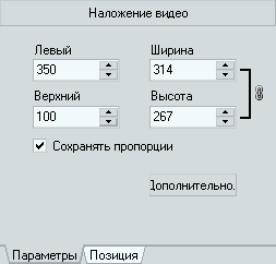 Здесь же в небогатых настройках вы можете изменить размер этого видео и его положение в кадре.