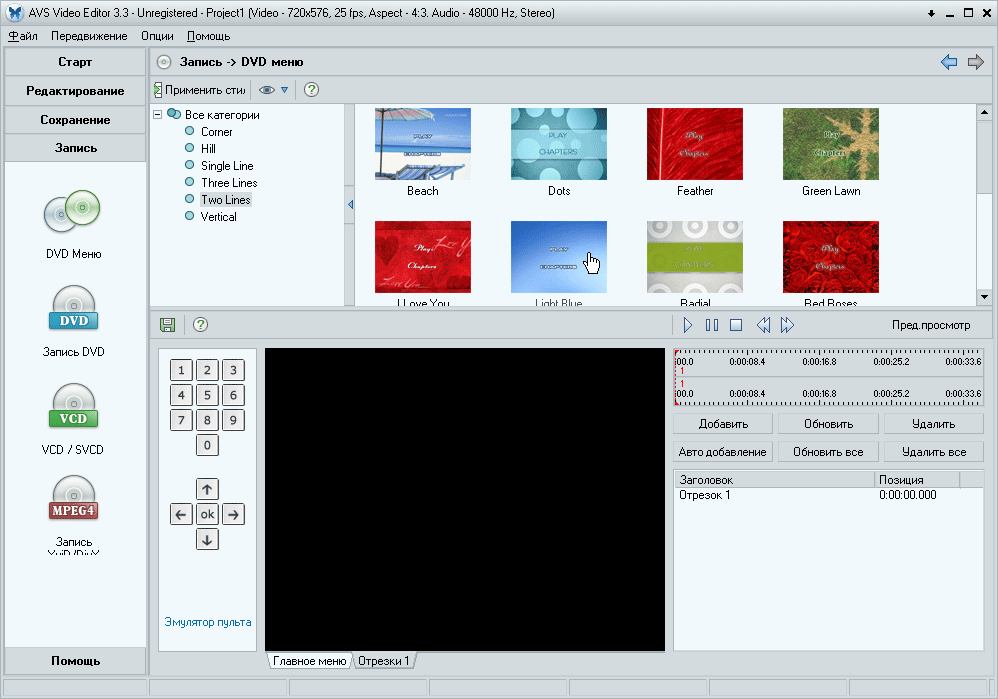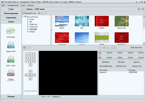 Думается, это придется делать постоянно ведь в AVS Video Editor отсутствуют инструменты для редактирования меню, что кажется вполне справедливым, если учесть мизерный объем инсталлятора программы.