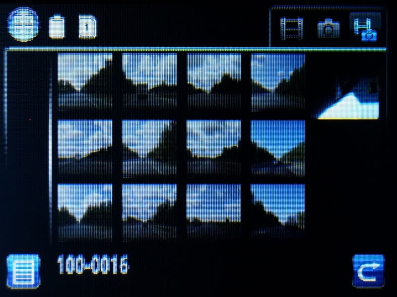 Режим файлового браузера отображается только на дисплее самой камеры. При этом миниатюра выбранного ролика оказывается анимированной, демонстрируя содержимое ролика. Конечно, рассмотреть детали при таком-то разрешении дисплея чрезвычайно трудно.