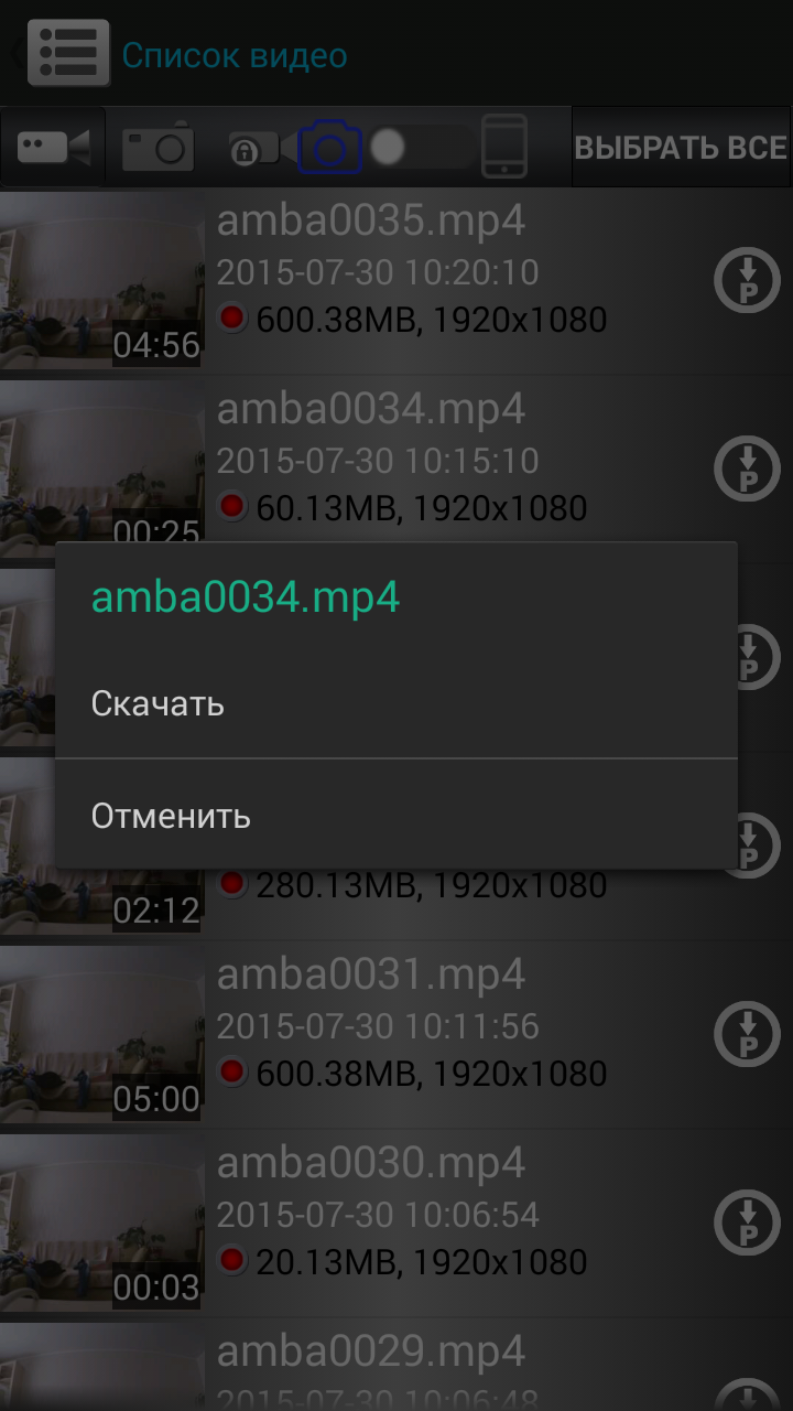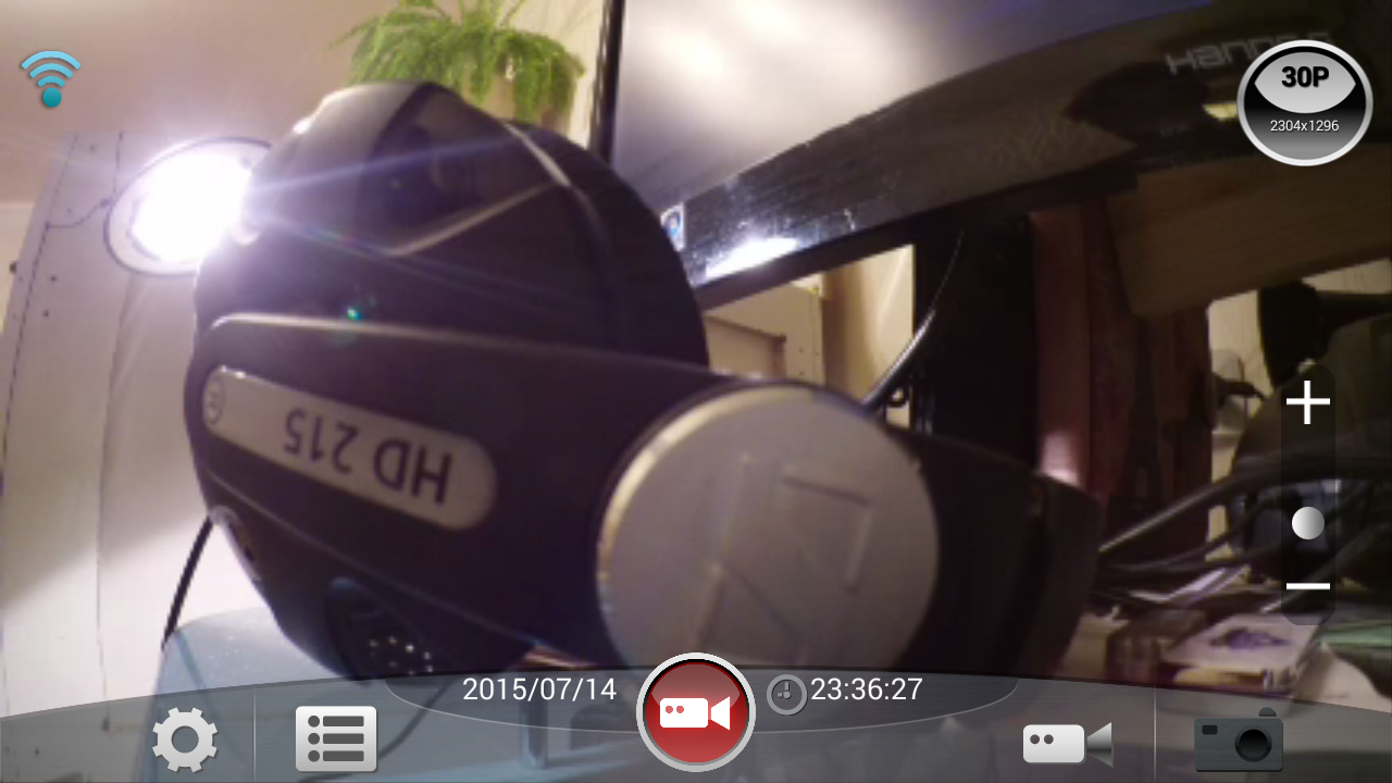 Просмотреть на смартфоне записанный видеоролик непосредственно по Wi-Fi почему-то нельзя: ролик или ролики можно только скачать на смартфон. Приложение работает как в ландшафтном, так и в портретном режимах. Задержка видеотрансляции составляет полторы-две секунды, обычный результат для подавляющего большинства устройств, обменивающихся видеоинформацией по воздуху.