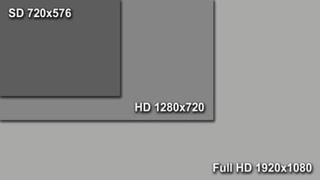 Прямоугольник посветлее, с разрешением 1280×720 — это скромняга HD (High Definition, высокое разрешение). Почему скромняга? Да потому, что уже не SD, но ещё и не Full HD. Названий такому размеру кадра придумано несколько. Например, с лёгкой руки одного из производителей видеокамер данный размер кадра обрёл имя AVCHD Lite. Лёгонький такой AVCHD. Да, вполне справедливо. Дело в том, что в кадре со сторонами 1280×720 содержится в 2,22 раза больше точек, чем в SD-кадре, но при этом в 2,25 раза меньше пикселей, чем в кадре Full HD, имеющем 1920×1080 точек. А ведь каждый пиксель подлежит обработке и передаче на расстояние (в случае с вещанием). Детализация в кадре AVCHD Lite значительно выше, чем в древнем SD — более чем в два раза. Но и ресурсов для обработки такого сигнала требуется в разы меньше, чем при работе с Full HD. Этакий переходный вариант, золотая серединка, входящая, между прочим, в список стандартов Blu-ray наравне с Full HD.
