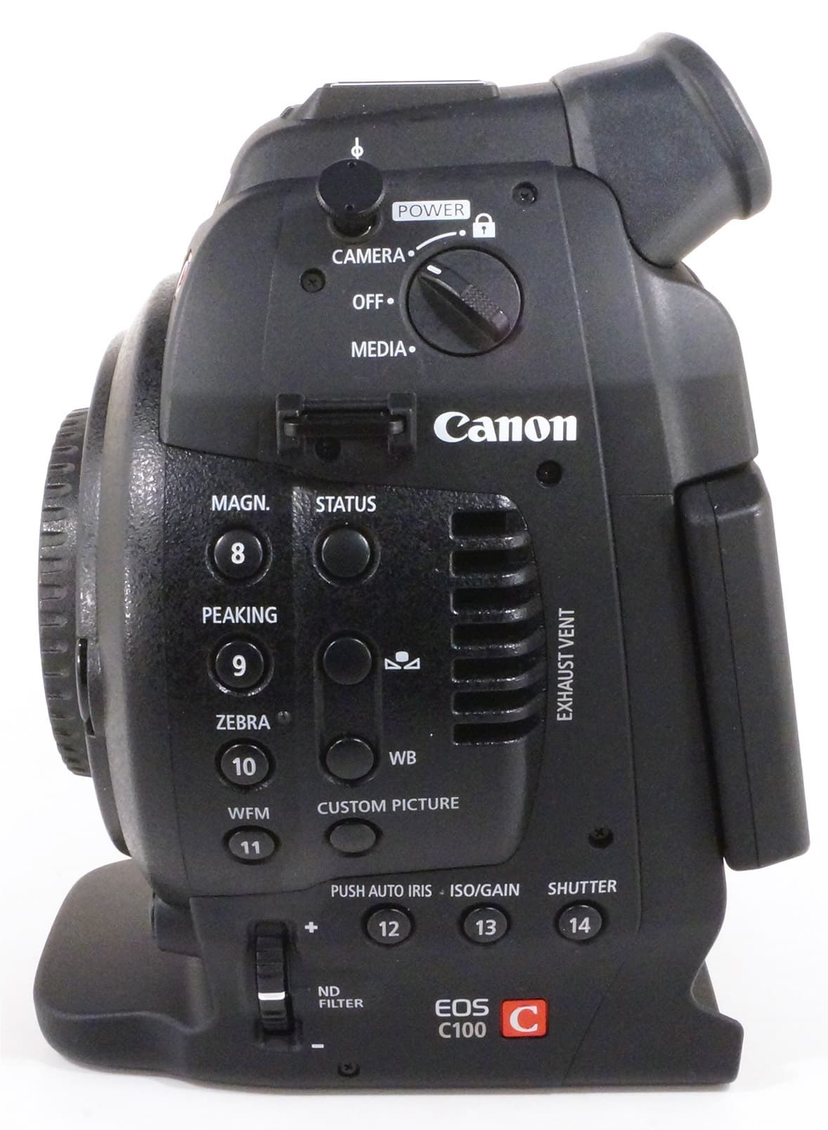 Лишенный объектива и рукоятей корпус утыкан кнопками. Всего их 15, каждая имеет определенную по умолчанию функцию. Сила профессиональной техники в том, что все эти умолчания позволяется изменить по своему усмотрению. Эту возможность нельзя переоценить. На одной из боковых сторон камеры можно видеть вентиляционные щели, из которых выдувается отработанный воздух (забор воздуха производится через такие же щели с обратной стороны корпуса). Охлаждение здесь принудительное, а расположенный внутри вентилятор может работать в автоматическом режиме, включаясь лишь при наступлении перегрева. Кстати, звук работающего вентилятора не попадает в микрофоны — вибрации нет, а микрофоны находятся далеко, на верхней рукояти, и «глядят» вперед.