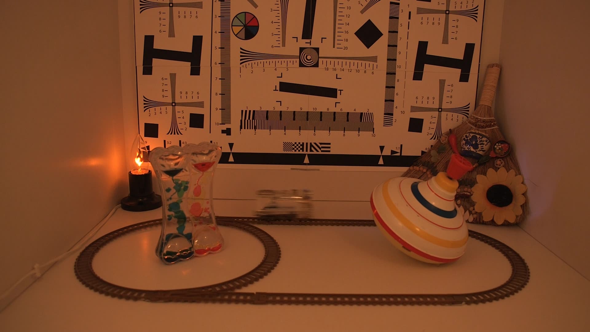 Съемка велась с автоматической подстройкой диафрагмы, выдержкой 1/25 с и ISO равным 1600 (бо́льшую чувствительность выставлять не следует — появляется заметный шум). Вследствие работы автоматики картинка получилась неяркая, что, в общем-то, является правильным для комфортной постобработки.