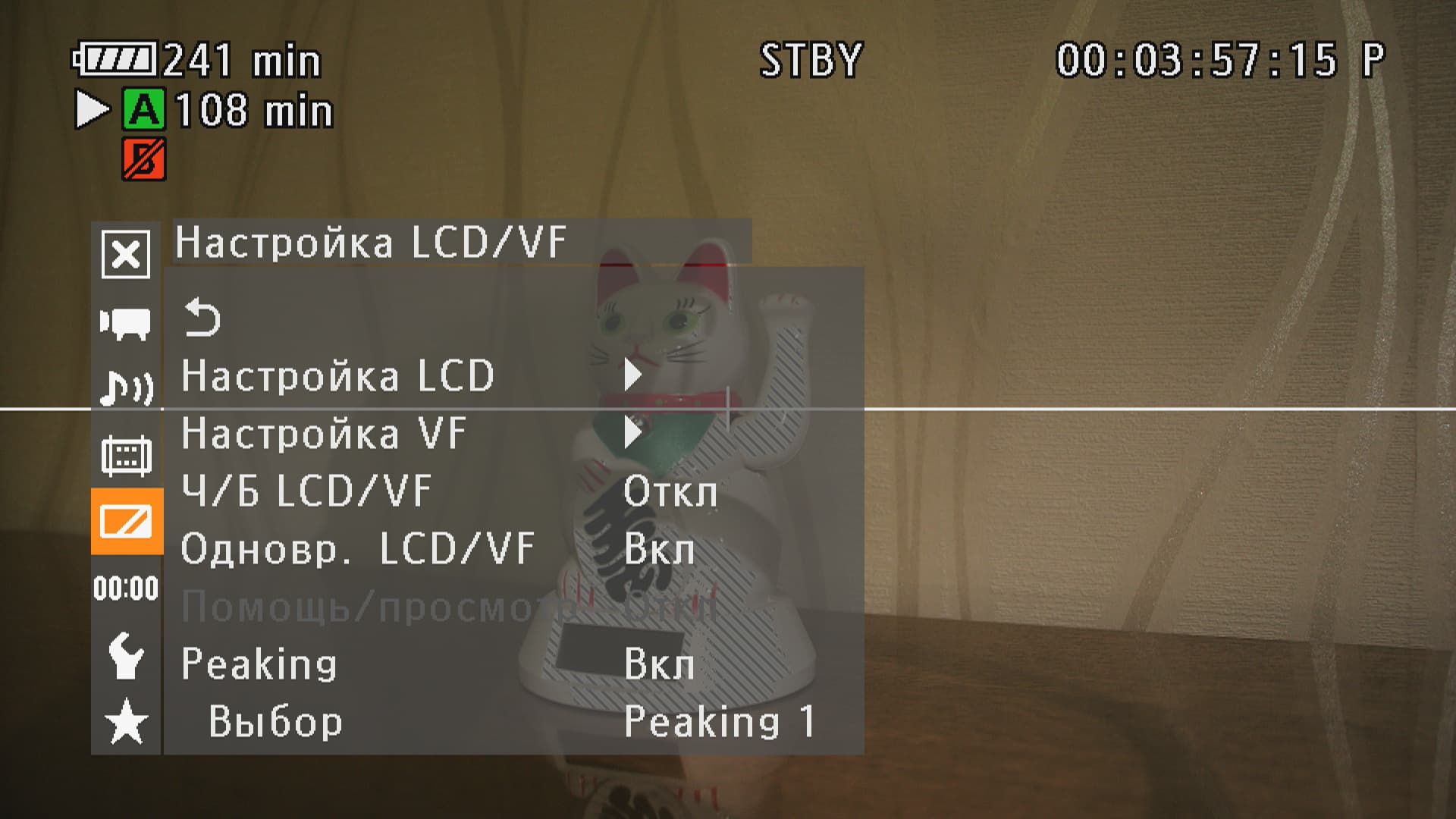 При длительной записи камера разбивает материал на видеофайлы объемом 2 ГБ независимо от типа файловой системы носителя. HDMI-видеовыход может отдавать как чистый сигнал, так и с оверлейным информационным наполнением. Исключение составляет гистограмма — она единственная не может быть выведена по HDMI и всегда видна только на дисплее камеры.