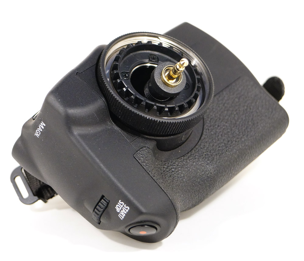 Кстати, вот она, эта рукоять. Вообще, правильней будет назвать ее управляющим блоком, так как здесь находятся XLR-разъемы для подключения микрофонов, пульт управления аудиоисточниками и их уровнем, ну и, конечно, дублирующая кнопка старта/остановки записи. Все это хозяйство крепко привинчивается к основному корпусу камеры и соединяется специальным коротким кабелем с многоштырьковым разъемом.