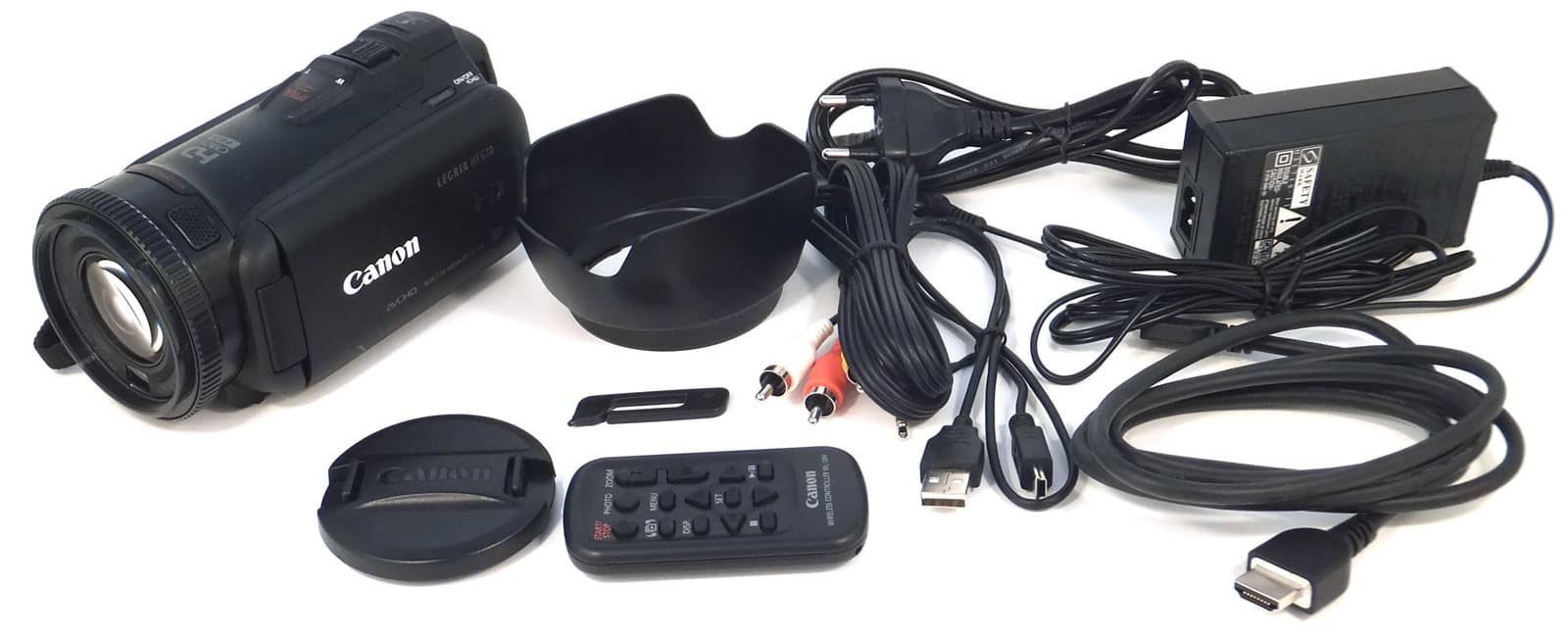 Комплектация видеокамеры немного отличается от той, что представлена на фотографии. Но именно такой набор поступил к нам на тестирование. Во избежание неясностей приведем полный список аксессуаров, официально поставляющихся с камерой: