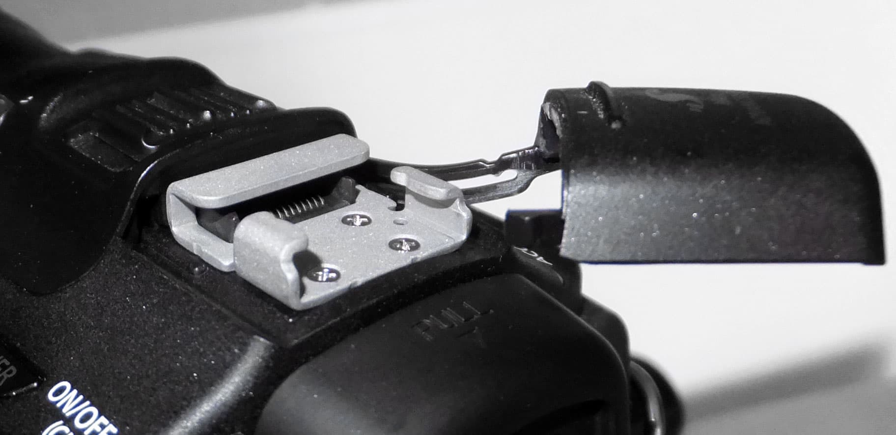 Под объективом находится нечто, напоминающее светодиодную вспышку — это внешний датчик, являющийся вспомогательным инструментом при автофокусировке. Скорее всего, этот датчик представляет собой два светоприемника, занимающиеся разложением поступающего света на два потока, по которым определяется разность фаз (за формулировку благодарим dmitryU).