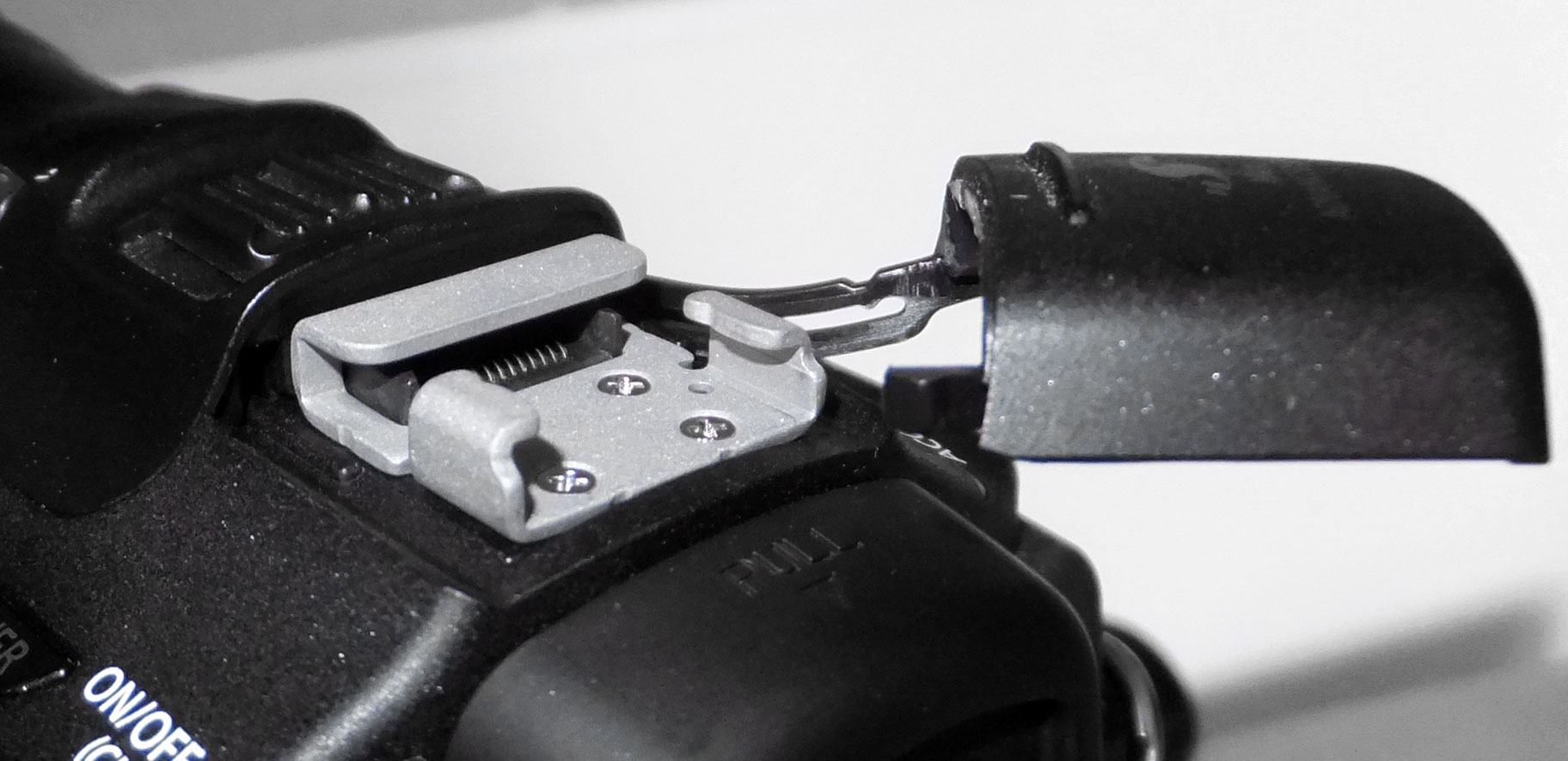 Ближе к торцу расположена колодка для крепления аксессуаров, она прикрыта крышкой на пластиковой ножке.