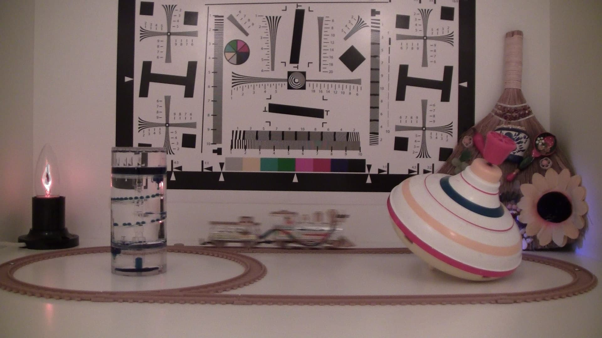 Данное тестирование проводится согласно опубликованной методике в целях установления чувствительности видеокамеры в неизменяемых условиях, а также для определения относительной чёткости выдаваемой картинки; результаты этих тестов аккумулируются на сравнительной странице.