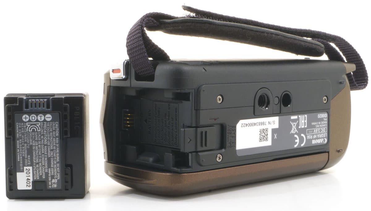 Батарея отстегивается с помощью рычажка, расположенного на дне корпуса, ближе к торцу. Резьбовое отверстие под штатив снабжено дополнительным углублением, которое исключает произвольный поворот камеры на штативной головке. Прилагаемый литий-ионный аккумулятор BP-718 позволяет вести непрерывную видеозапись в течение 118 минут в режиме AVCHD 1920×1080 50i 17 Мбит/с. Данный результат очень неплох для комплектного аккумулятора.