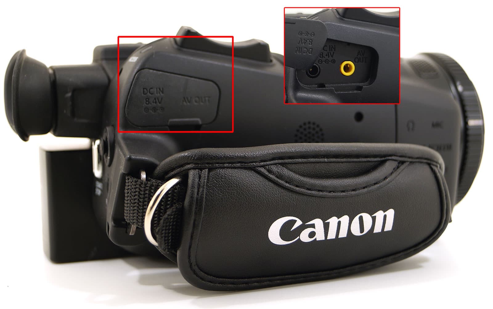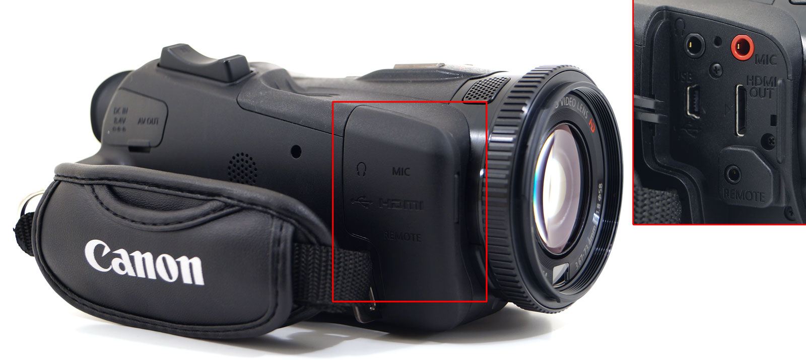 На правой стороне корпуса, ближе к объективу, находится откидная дверца-заглушка, скрывающая некоторые служебные интерфейсы: