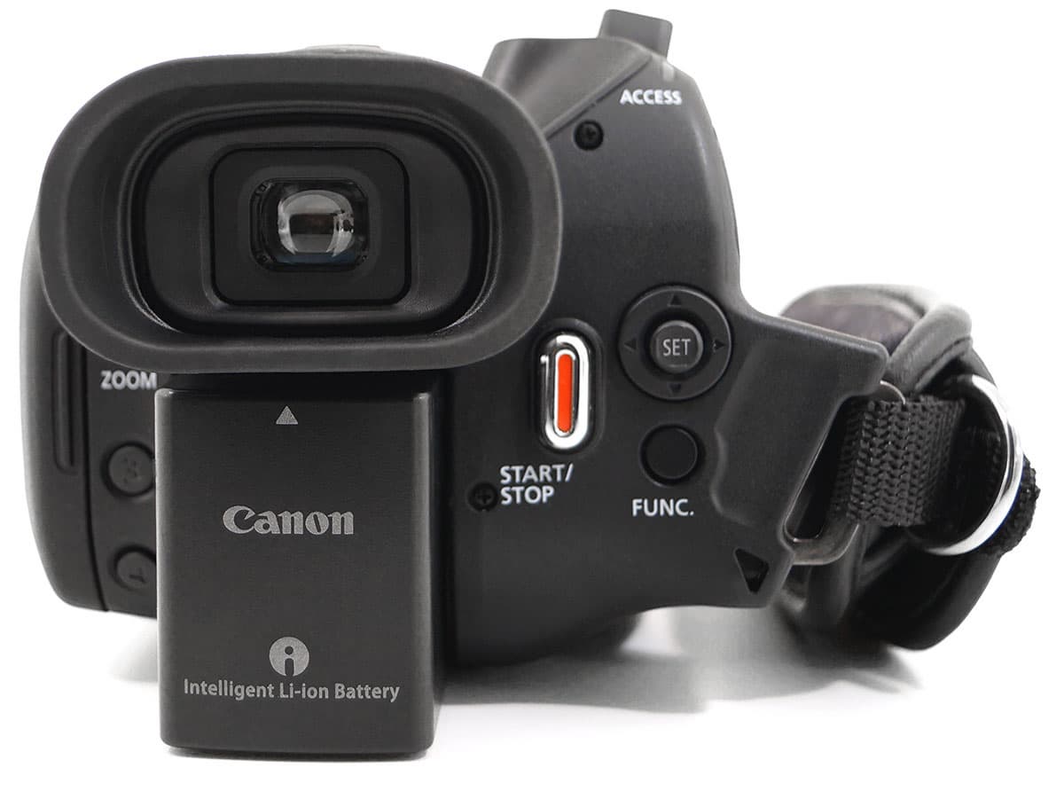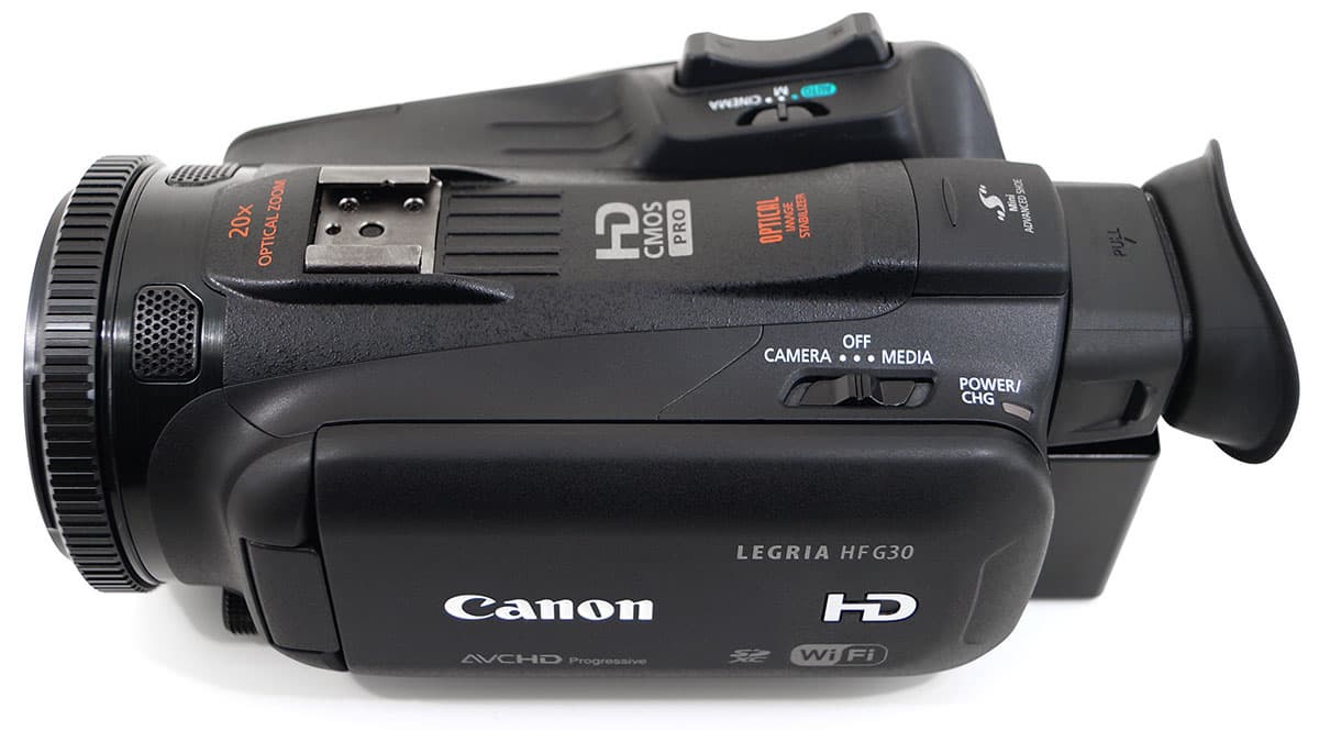 На верхней части корпуса аппарата расположены стереомикрофоны, колодка для крепления аксессуаров «холодный башмак», качалка зума с ходом в три миллиметра; рядом с качалкой находится переключатель режимов съемки (Auto/Manual/Cinema). Ближе к откидному монитору находится переключатель режимов работы аппарата: камкордер/выкл./медиаплеер.