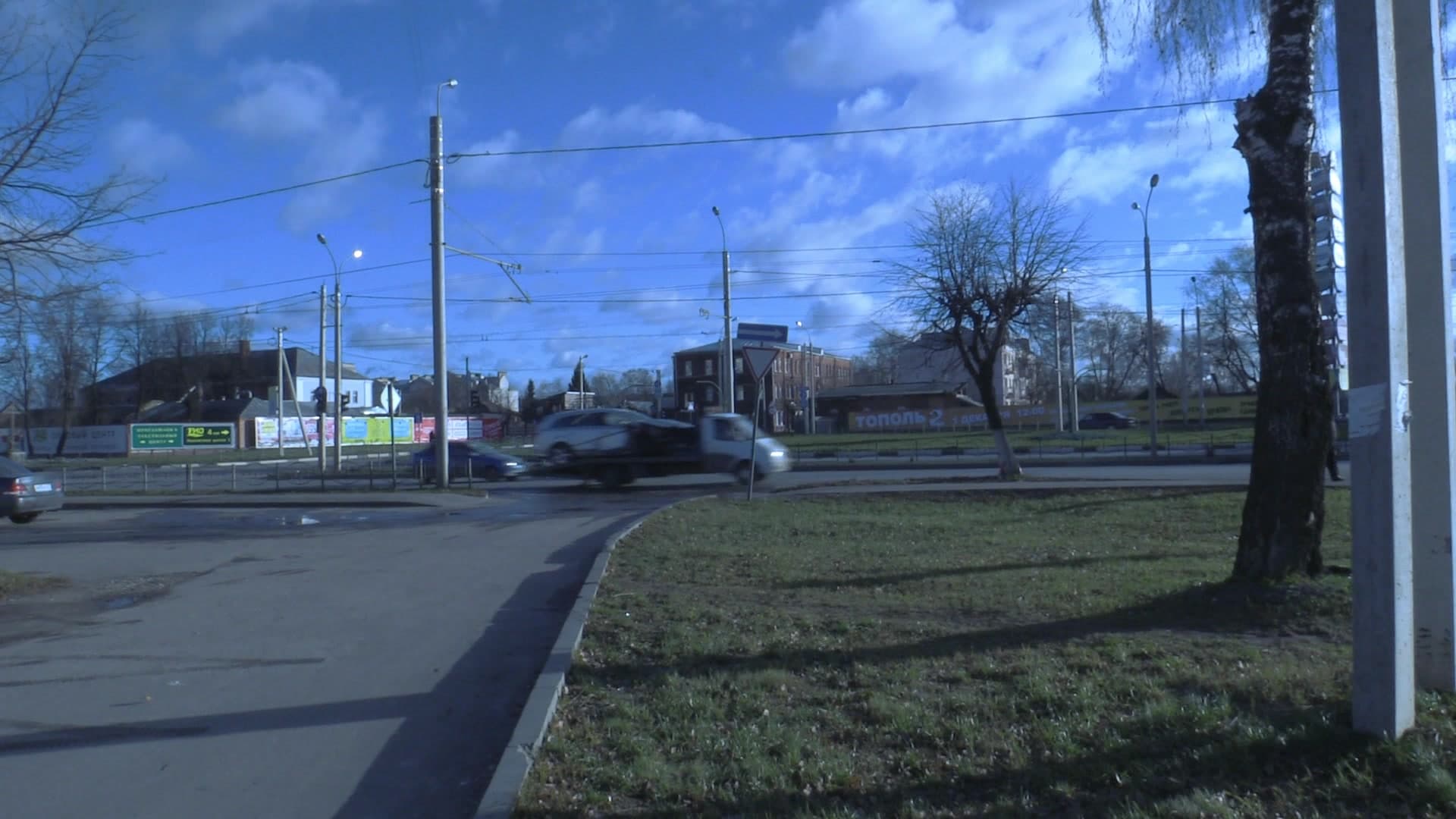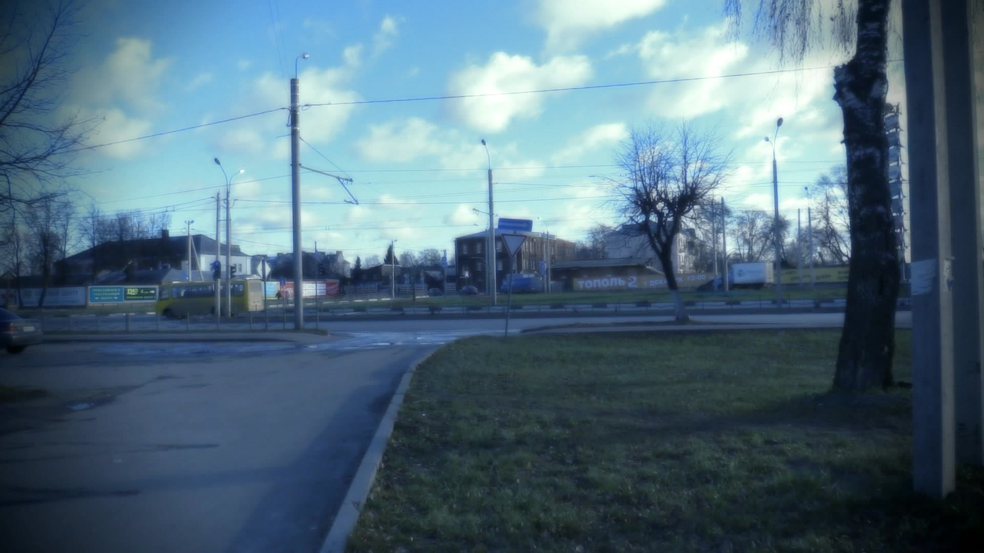 Ввиду небольшого количества пикселей в используемой матрице можно ожидать столь же низкого уровня роллинг шаттера (подробнее см. в материале Роллинг шаттер в видеосъемке — описание дефекта, примеры, пояснения). Собственно, это мы и наблюдаем: роллинг шаттера почти нет. Для сравнения — если бы данное видео было снято, к примеру, многомегапиксельным фотоаппаратом, то этот дорожный знак имел бы наклон не менее 45°.