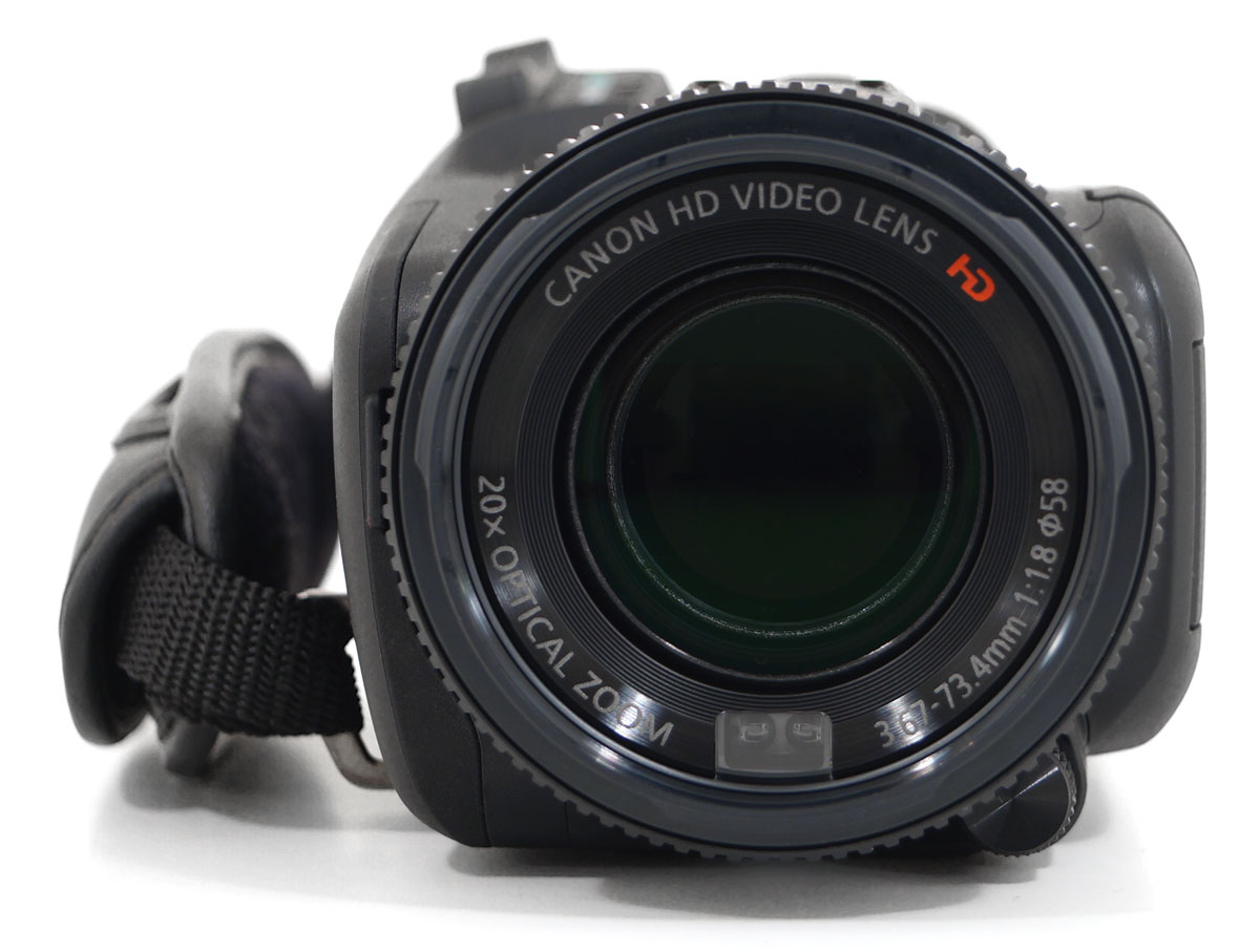 Солидного вида корпус, размерами никак не вписывающийся в ряд нынешних любительских видеокамер, выполнен из черного матового пластика с редкими вставками из металла. Люфтов между плотно пригнанными друг к другу частями корпуса не имеется, однако эти части немного поскрипывают при нажатиях — сказываются габариты конструкции. Бленда объектива, увеличивающая длину камеры на пять сантиметров, легко отстегивается от корпуса путем вращения против часовой стрелки. Внутри бленды находится поднимающаяся и отпускающаяся дверца для защиты стекла объектива.