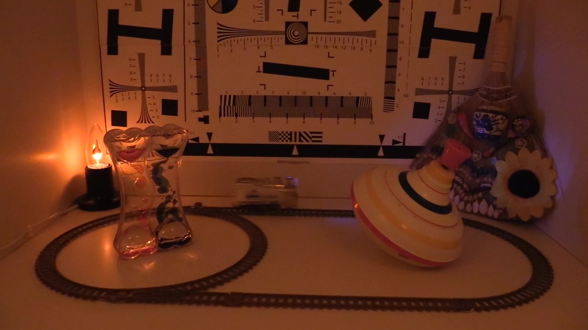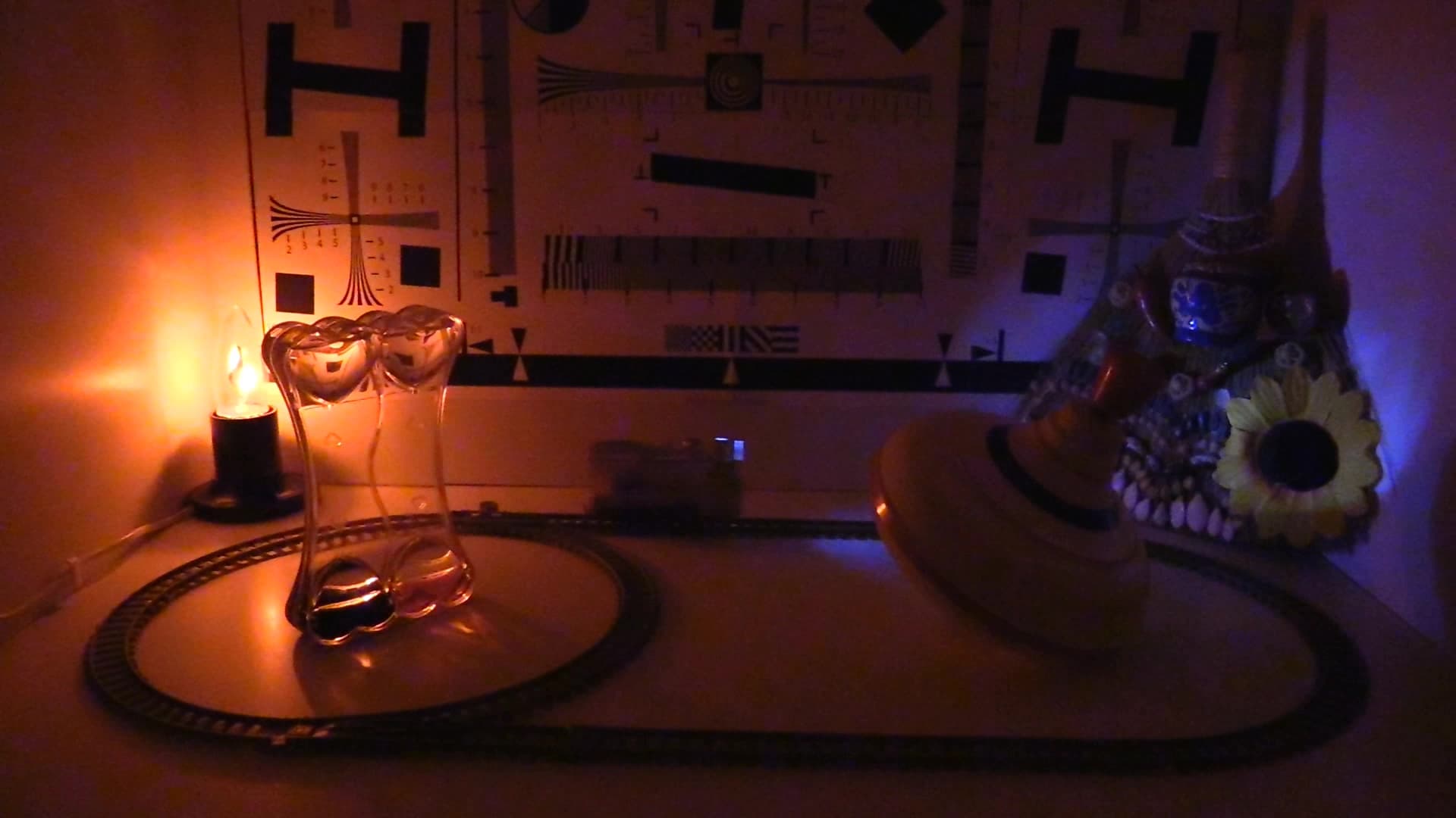 Главная особенность стендовой установки — постоянная неизменяемая скорость вращения диска, на котором расположено полотно с вертикальной линией. В нашем случае эта скорость составляет ровно 78 оборотов в минуту. Полученный результат сам по себе, в отрыве от других результатов, не имеет ценности. Единственная от него польза состоит в том, что эти градусы можно сравнить с результатом измерения роллинг-шаттера других камер, которые тестировались аналогичным образом.