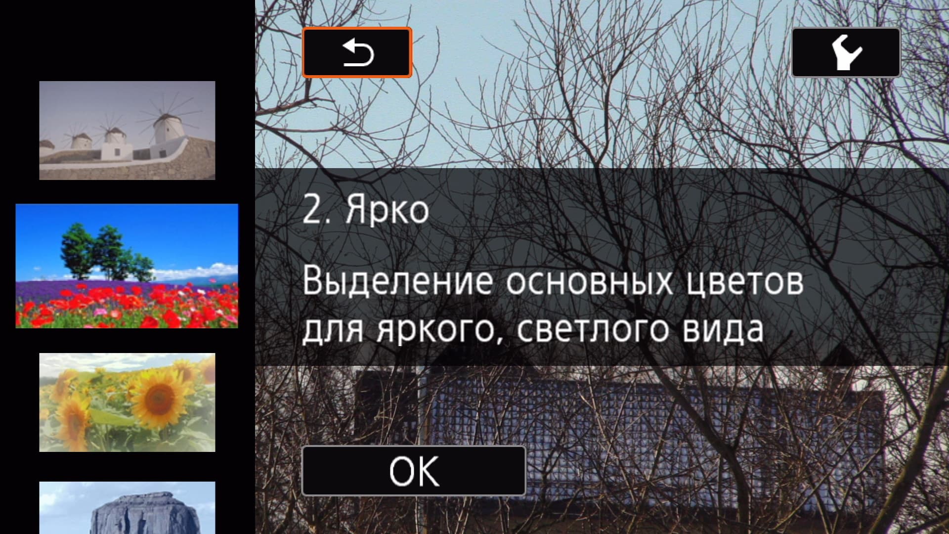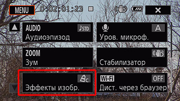 | Пункт «Эффекты изображения» в меню быстрого доступа | Включение эффектов изображения |