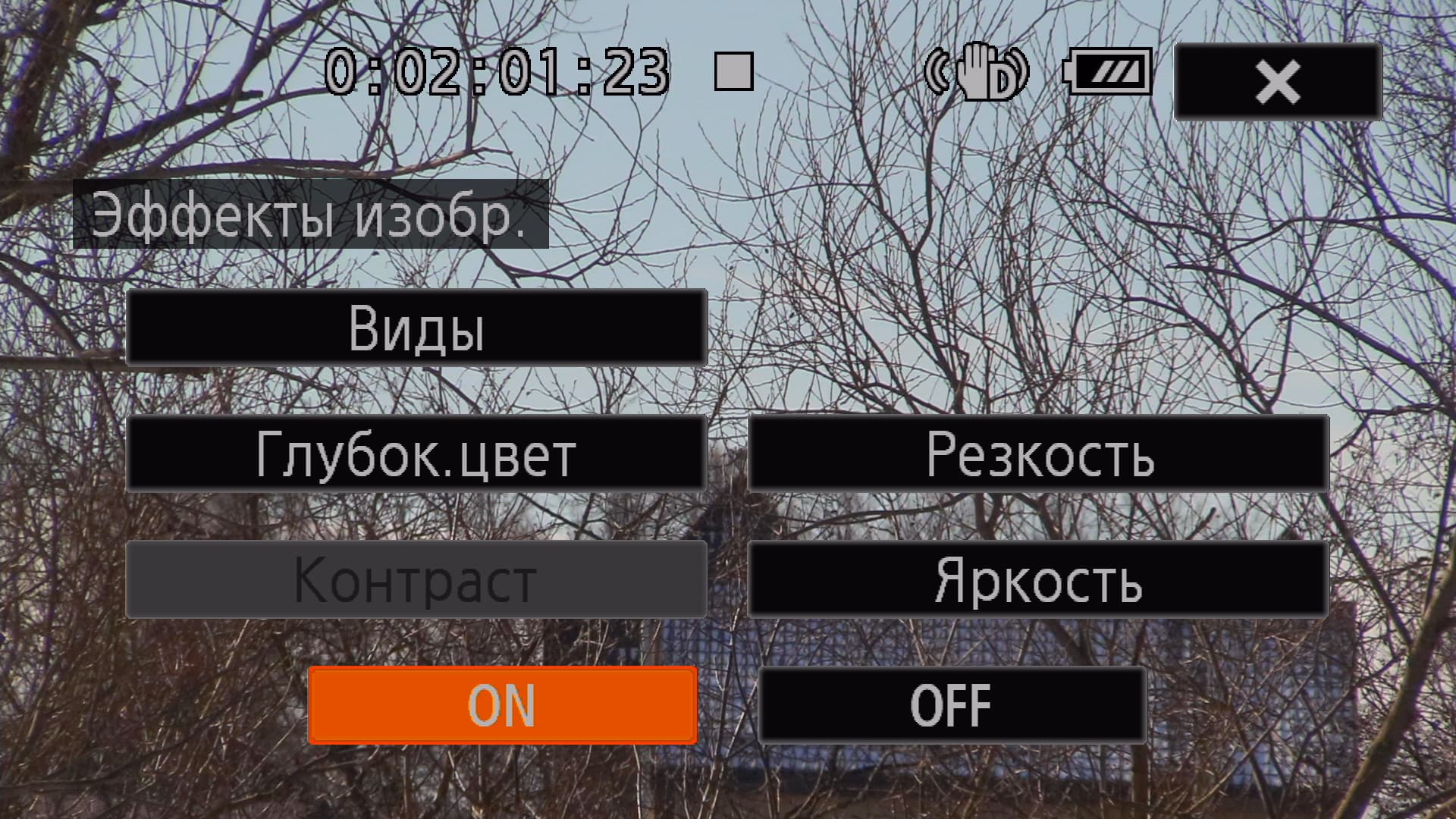 Помимо киноэффектов, в камере присутствует настройка, называемая Эффект изображения. Она доступна только в режиме работы с ручными настройками (Manual). Здесь имеется возможность подрегулировать насыщенность, контрастность, резкость и яркость кадра.