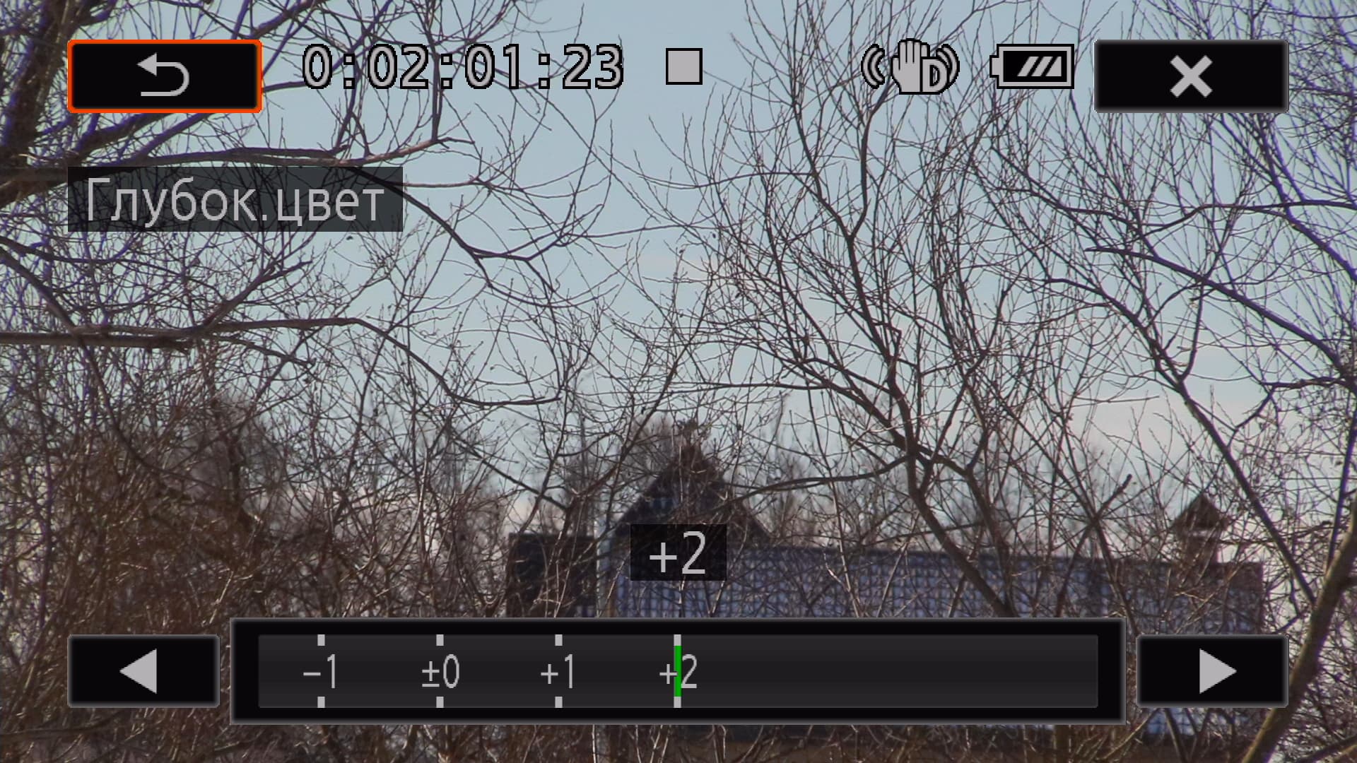 Ручные настройки аппарата допускают возможность управлять экспозицией и другими параметрами непосредственно во время съемки. Но возможно это лишь в режиме Manual с отдельно выбранной ручной настройкой экспозиции. То же касается активации механизма компенсации засветки — она доступна во время видеозаписи и работает только в ручном режиме съемки.